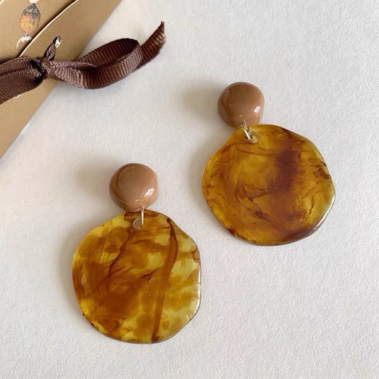 Retro Hong Kong Style Brown Earrings Autumn and Winter Maillard Amber Smudged Contrasting Color Earrings Atmospheric Earrings Ear Clip Earrings
