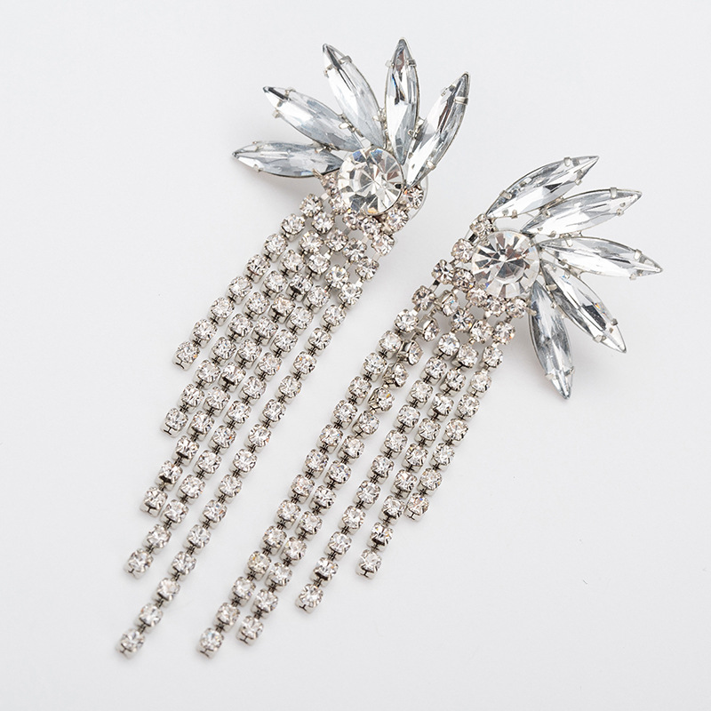 Silver Diamond Tassel Multi-section Multi-layer Lengthened Overlapping Earrings Women's Sweet Style Ear Jewelry E147