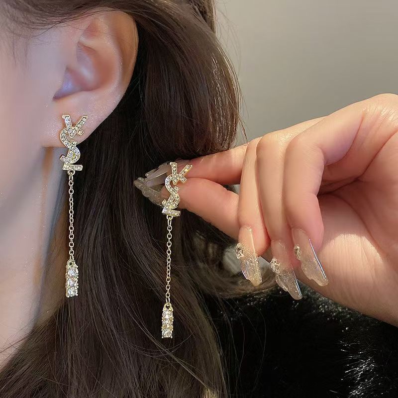 Letter Zircon Long Tassel Earrings High-End Accessible Luxury Elegant Earrings 2025 New Classy Small Fragrance Earrings
