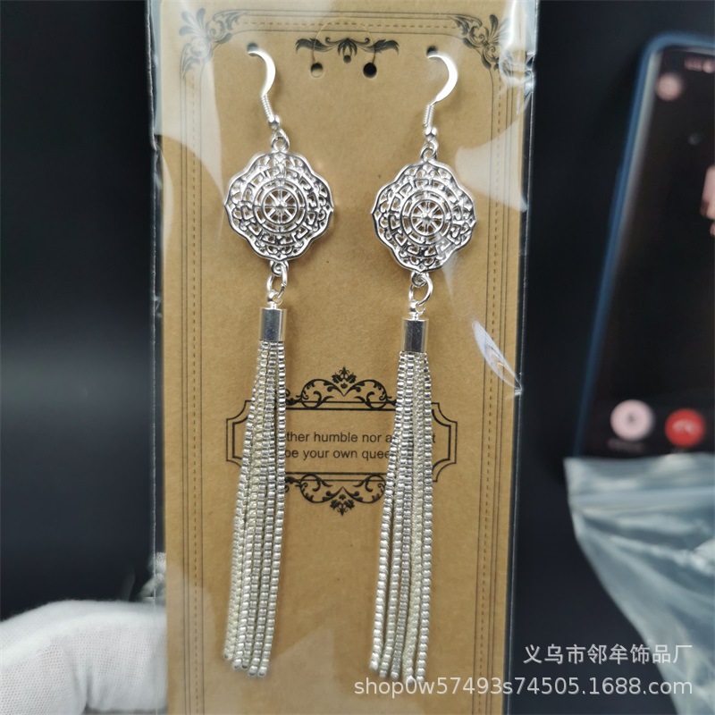 Mongolian earrings women's ethnic style long tassel earrings Mongolian elements imitation silver jewelry wholesale