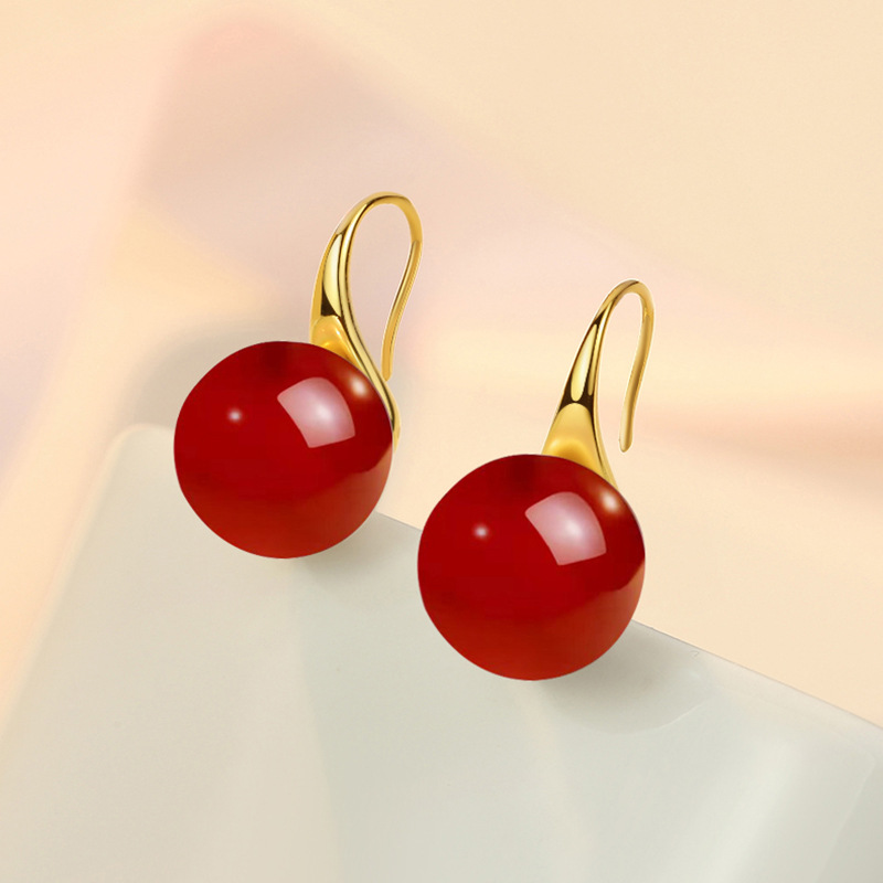 S925 sterling silver gold-plated fashion Net red high heel shoes ear hook red agate earrings green agate earrings