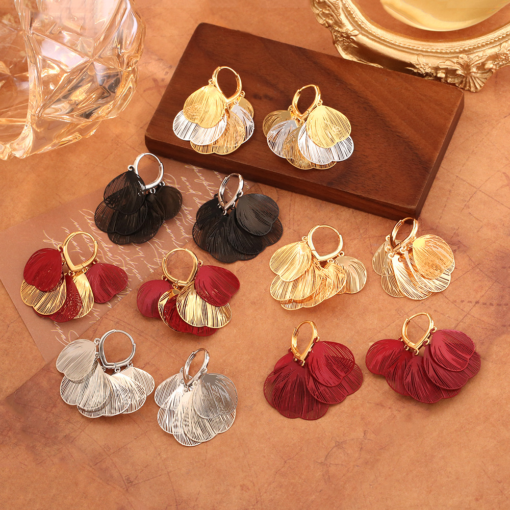 Ginkgo Leaf Metal Cut Out Earrings, High-End, Unique and Personalized Tassel Earrings, Elegant and Fashionable Earrings