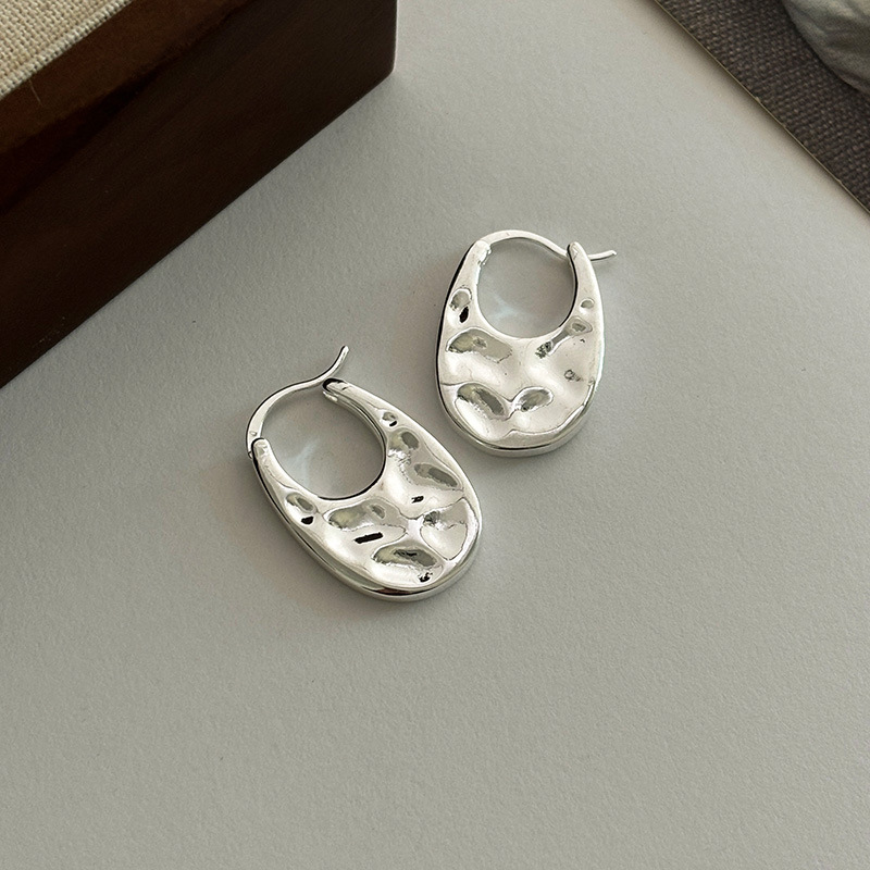 Silver Shenzhen s999 sterling silver circle earrings female niche design high sense earring temperament versatile plain ring silver earrings