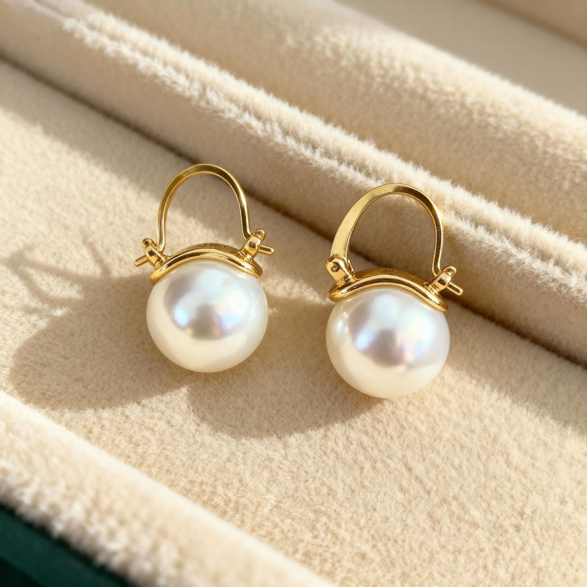 S925 Silver Aurora Australian White Pearl Bucket-Style Earrings for Women, Light Luxury Niche High-End Fashion Earrings for Women
