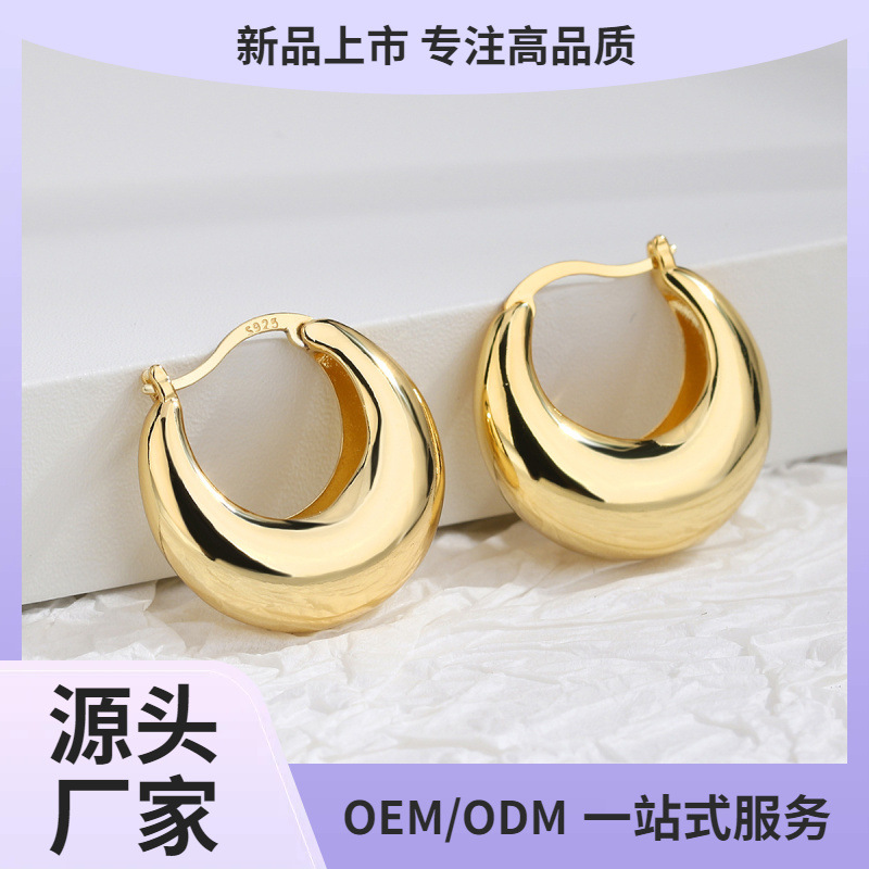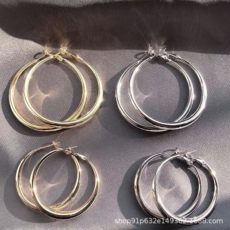 European and American New Classic Simple Plain Hoop Earrings with a Glossy Surface, Light Luxury, High-End Feel, Versatile Silver Needle Hoop Earrings for Women