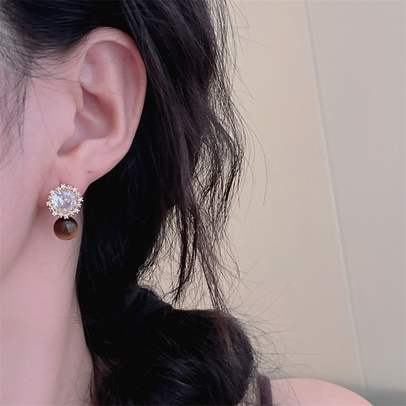 2025 New Zircon Pearl Earrings Niche Design Light Luxury Versatile High-End Tiger Fashion Commuter Accessories