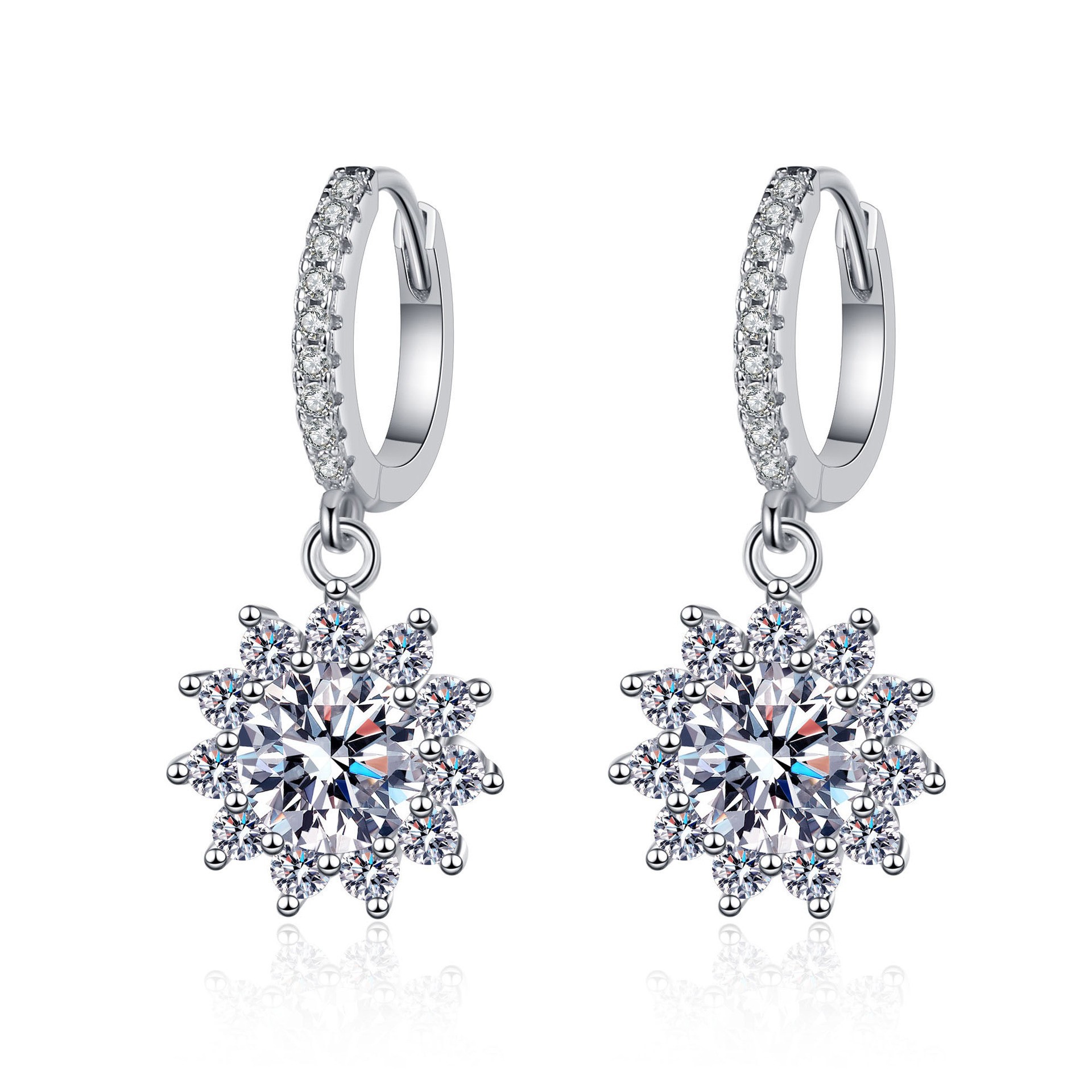 925 Sterling Silver Needle Sunflower Earrings for Women Inlaid with Moissanite Gold-Plated Zircon Ear Buckle Jewelry Manufacturer Spot Wholesale