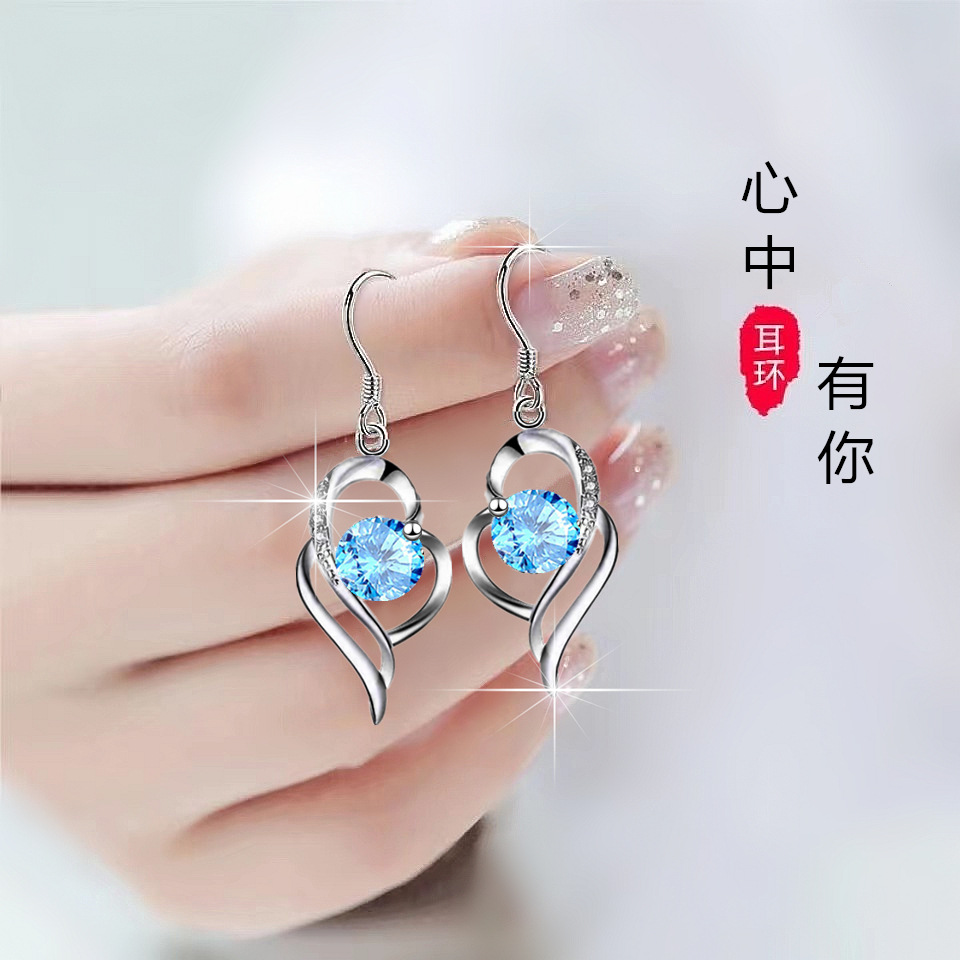 Strong sterling silver earrings with you in my heart temperament long girl pink heart-shaped earrings Korean Net Red Jewelry