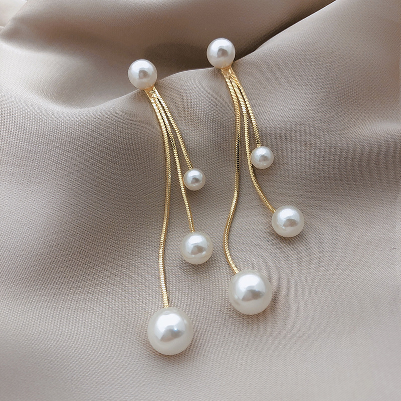 Korean Dongdaemun new jewelry pearl tassel earrings long earrings 925 silver needle elegant slimming face earrings