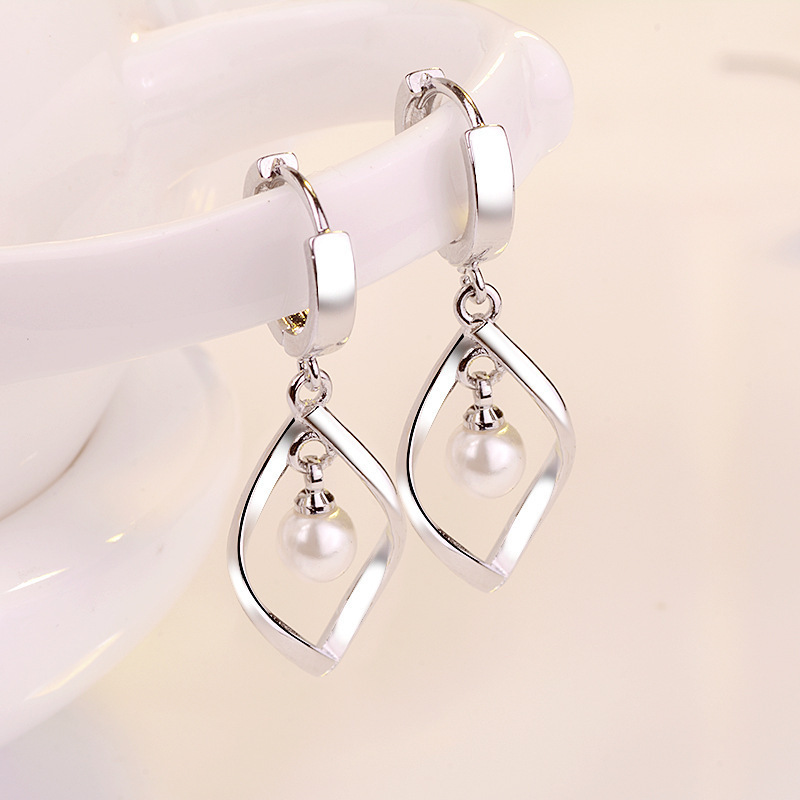 Approximately New Silver Earrings, Rotating Love Pearl Earrings, Women's Long Earrings, Twisted Fashion Pearl Earrings