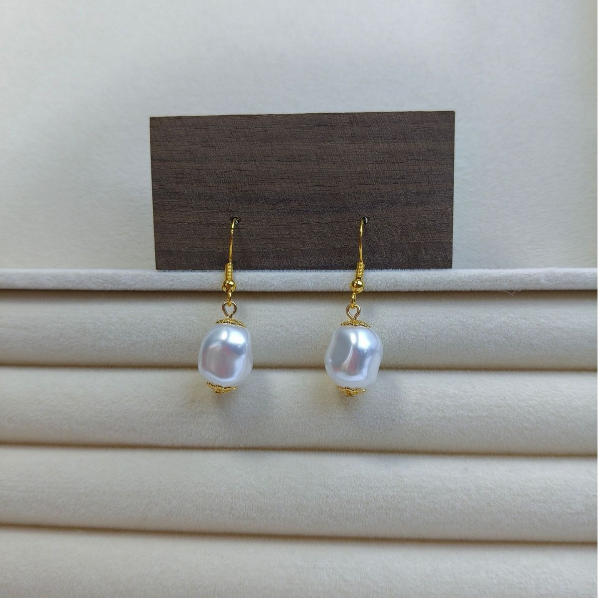 Casual and Fashionable 925 Sterling Silver Ear Hooks Baroque Special-Shaped Asymmetrical Pearl Earrings Color-Preserving 18K Copper Plated with Real Gold