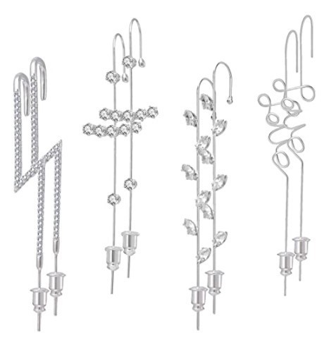 Cold personality zircon earrings one-word oblique lightning Love piercing ear pin winding outline ear bone clip ear hanging