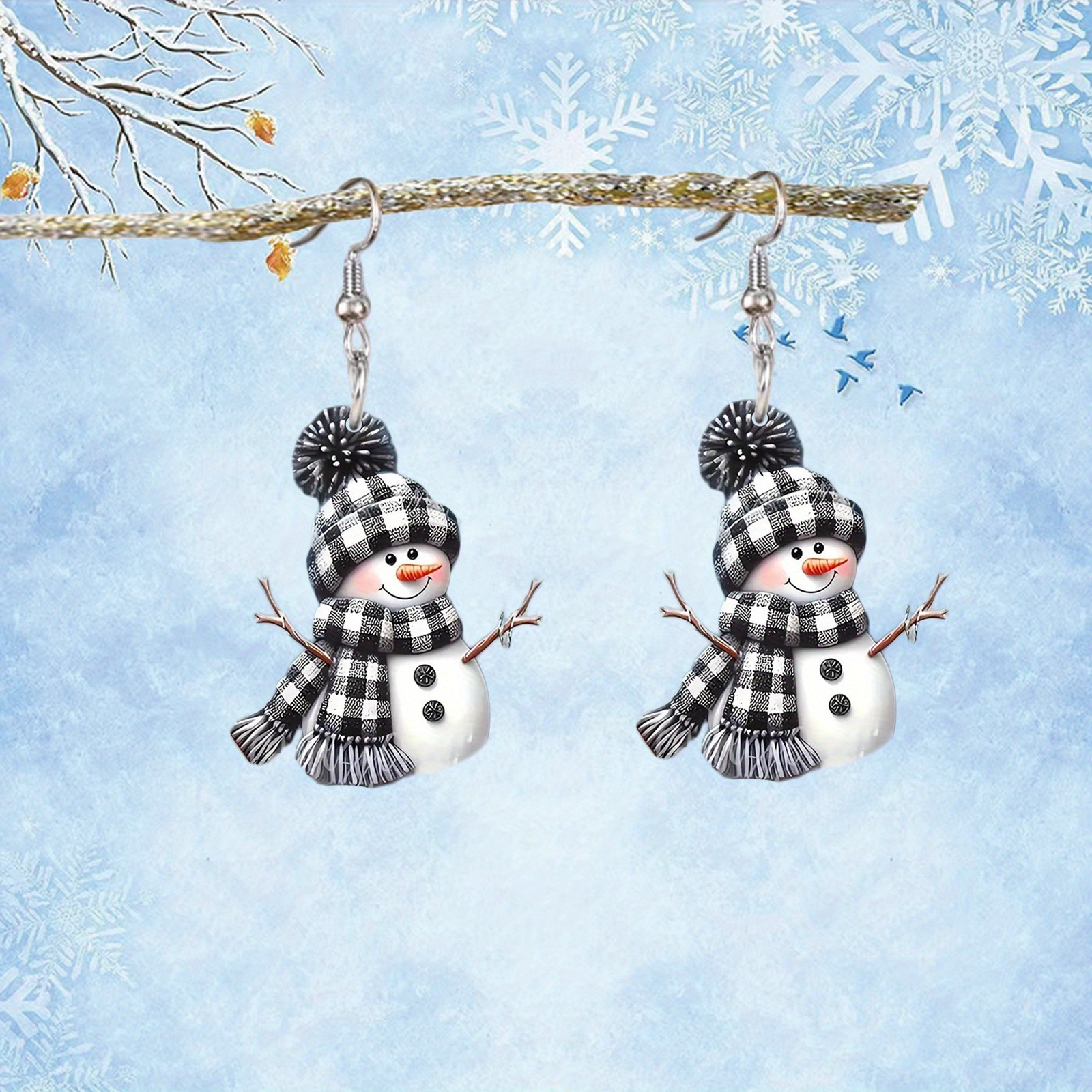 Cross-Border Creative Flat Christmas Acrylic Cartoon Deer Pendant Jewelry Cute Black and White Scarf Snowman Earrings
