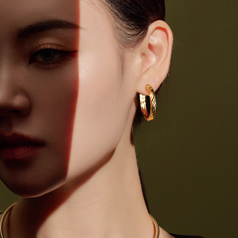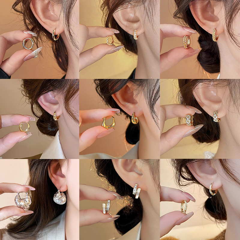 Casual Zircon Small Earrings, Niche Accessible Luxury, High-End Plain Hoop Earrings, Fashionable and Versatile Ear Jewelry