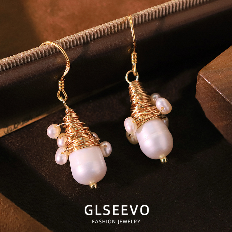 Natural Pearl Earrings with a High-End Feel, 925 Sterling Silver Needle, Women's Rice Bead Wire-Wrapped Earrings, Simple Original Handmade Earrings Wholesale