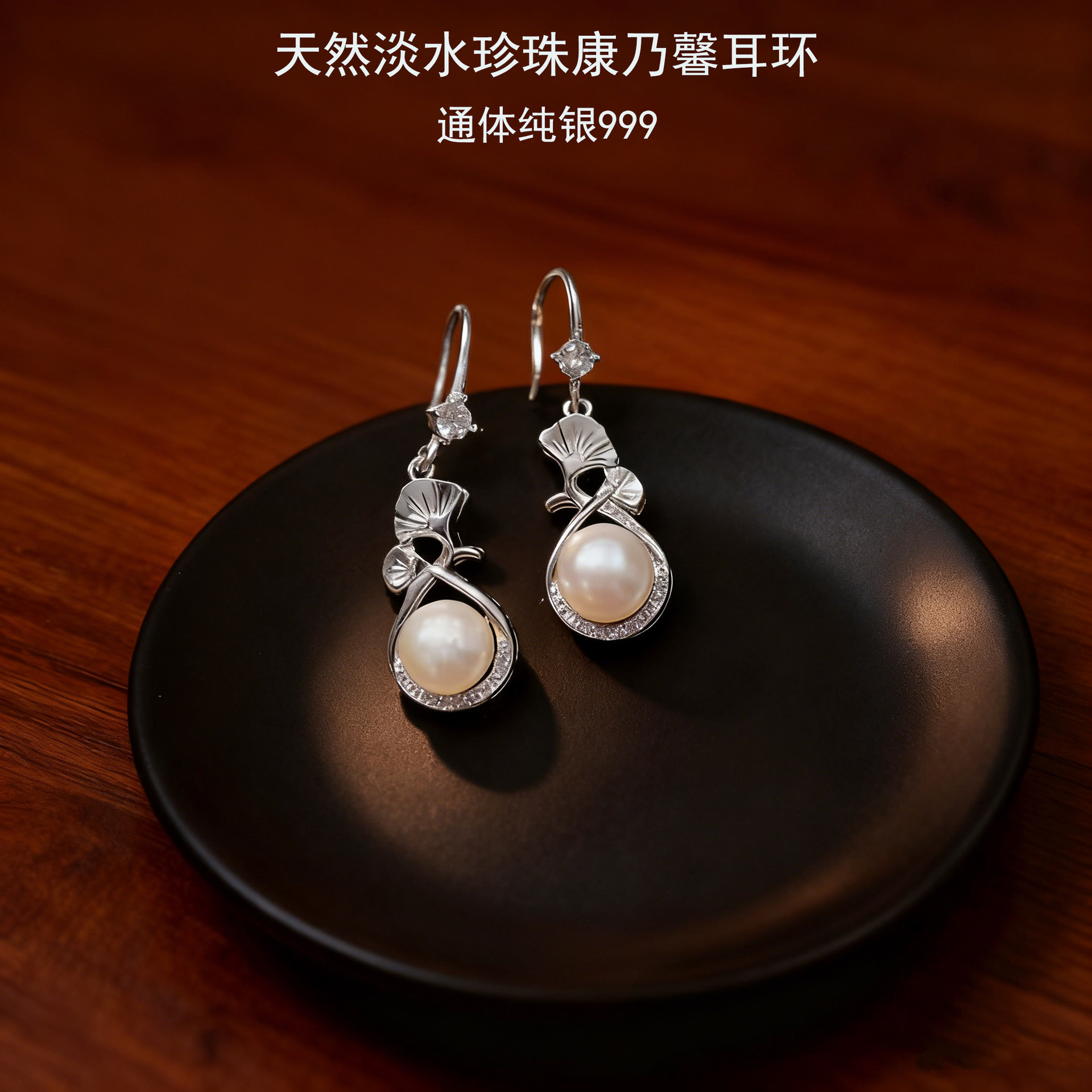 999 Pure Silver Carnation Ear Hooks Natural Pearl Earrings Light Luxury Exquisite High-End Vintage Autumn and Winter Earrings Wholesale