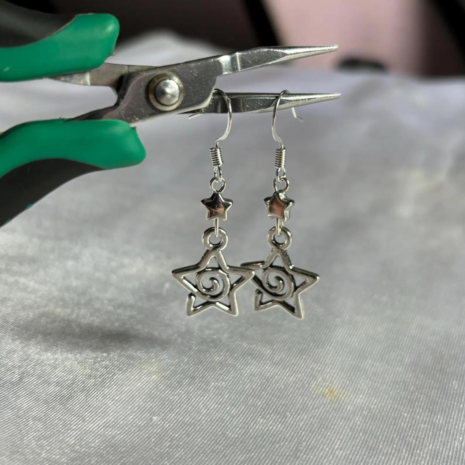 whimsical gothic star inlaid silver earrings rotating gothic hook natural aesthetic handmade jewelry