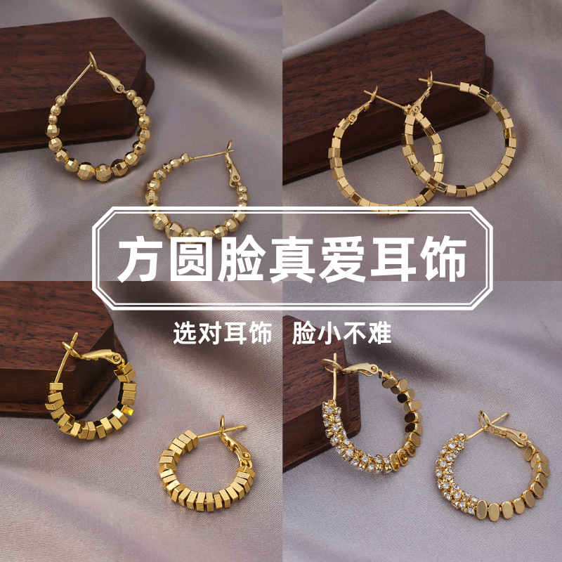 European and American fashion temperament gold pigment circle earrings niche design ear buckle light luxury retro high-end earrings wholesale
