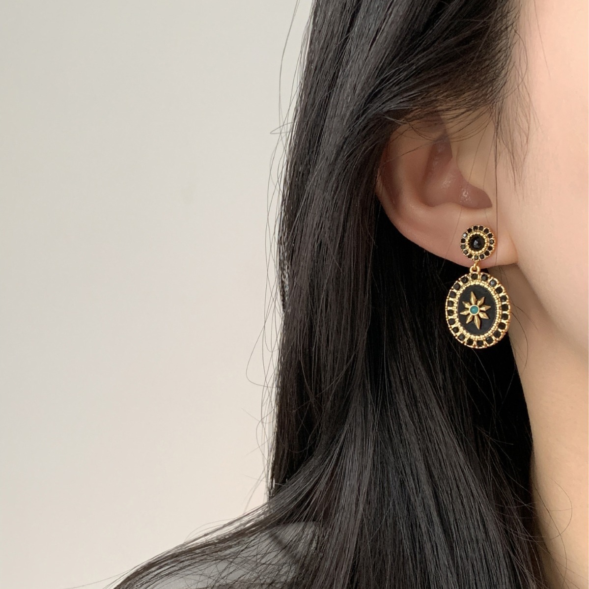 high quality S925 Silver Needle Light Luxury French Retro Black Mang Star Diamond Earrings Women's Elegant Earrings