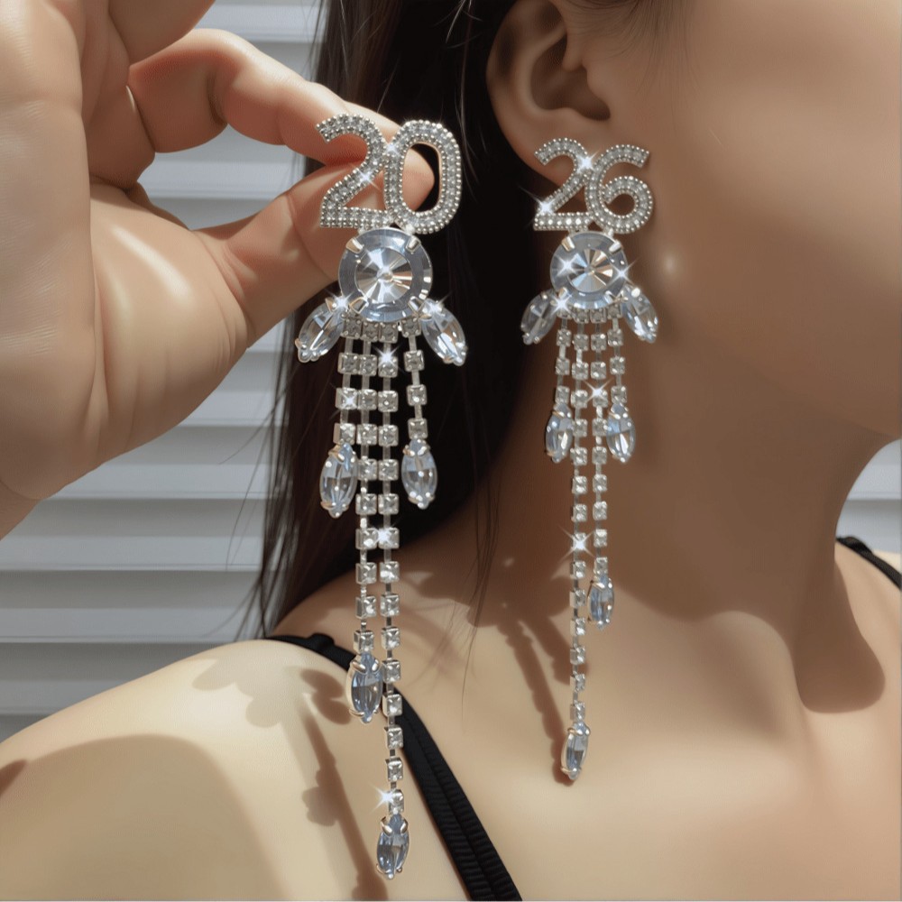 New Rhinestone Irregular Long Tassel Earrings Party Christmas Gift Full Diamond 2026 Digital Earrings Earrings for Women