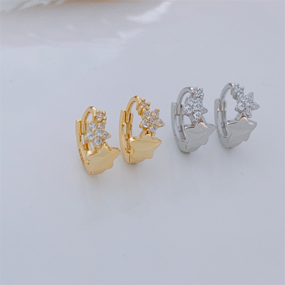 Shining Stars Earrings S925 Sterling Silver Diamond Ear Buckle Light Luxury Zircon Earrings Cross Border Gold Plated K Gold Silver Jewelry Women's Gift
