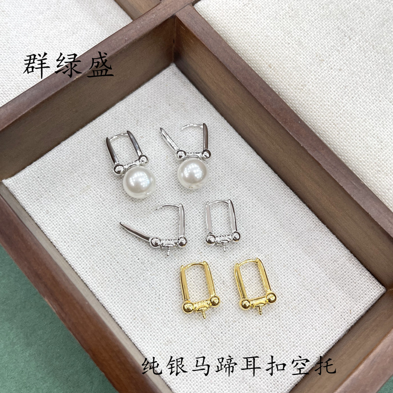 Qunlvsheng S925 sterling silver horseshoe ear buckle empty support diy sticky beads semi-finished ear jewelry simple U-shaped ear hook accessories