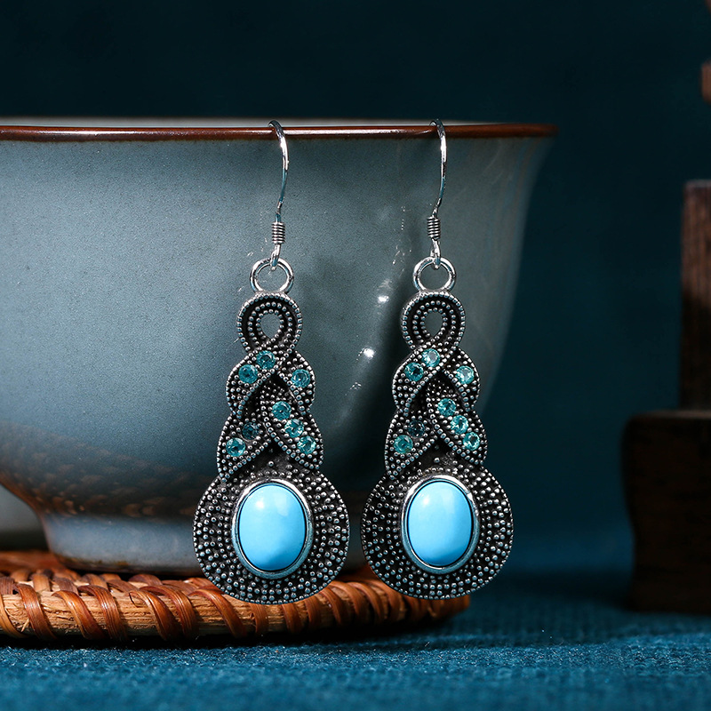 Geometric retro cross-border ancient silver blue stone earrings pendant tribal ethnic style bohemian jewelry earrings New