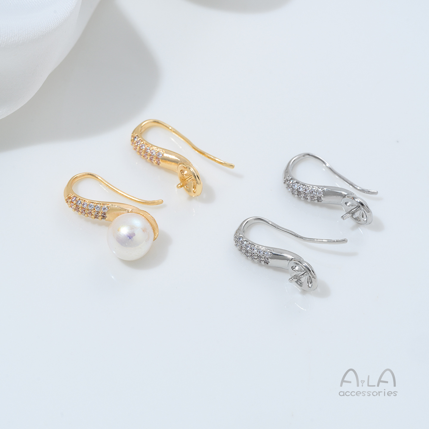 Copper Plated 14K Gold-Plated Zirconium Spoon Ear Hook Half-Hole Bead Holder High-Heeled Shoes Earrings Handmade DIY Earrings Accessories Material