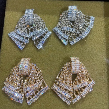 European and American Exaggerated Accessible Luxury High-End Zircon Flash Diamond Bow Tassel Earrings Geometric Bow Gift Earrings for Women