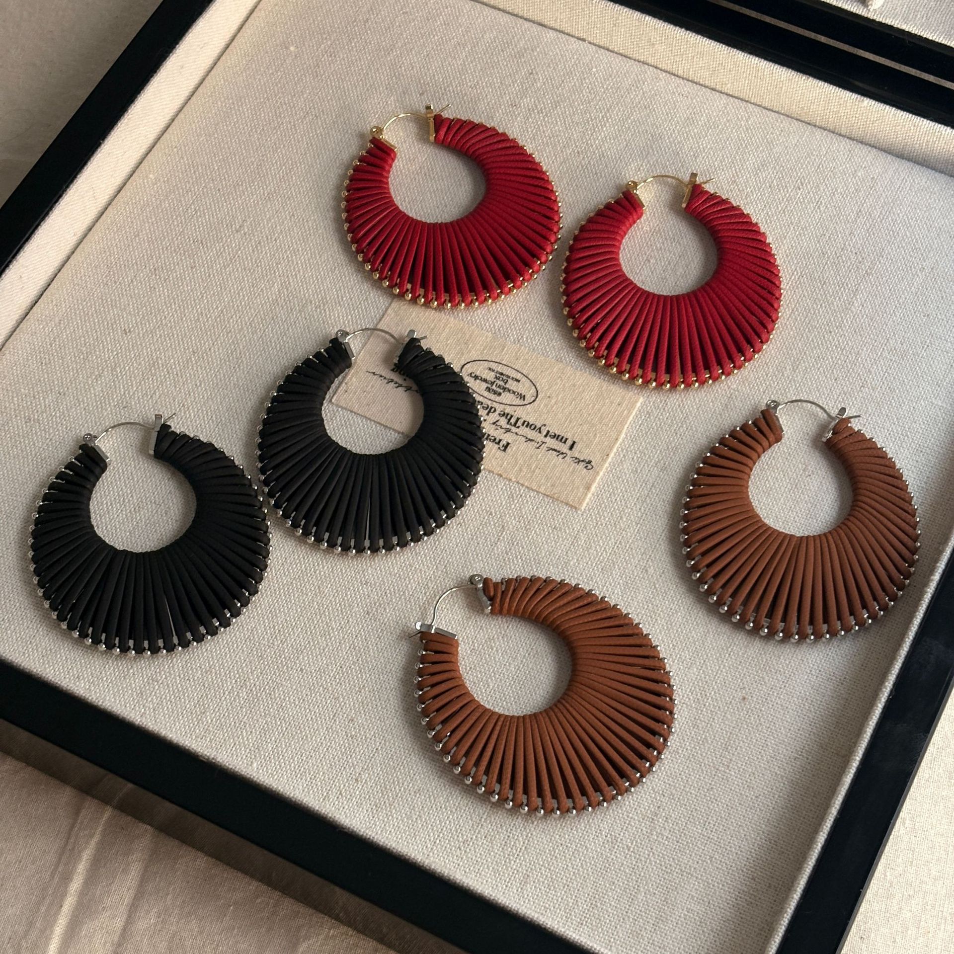 Exaggerated Autumn and Winter Matte Red Braided Round Earrings for Women Ins Style Coffee Niche High-End Earrings Earrings