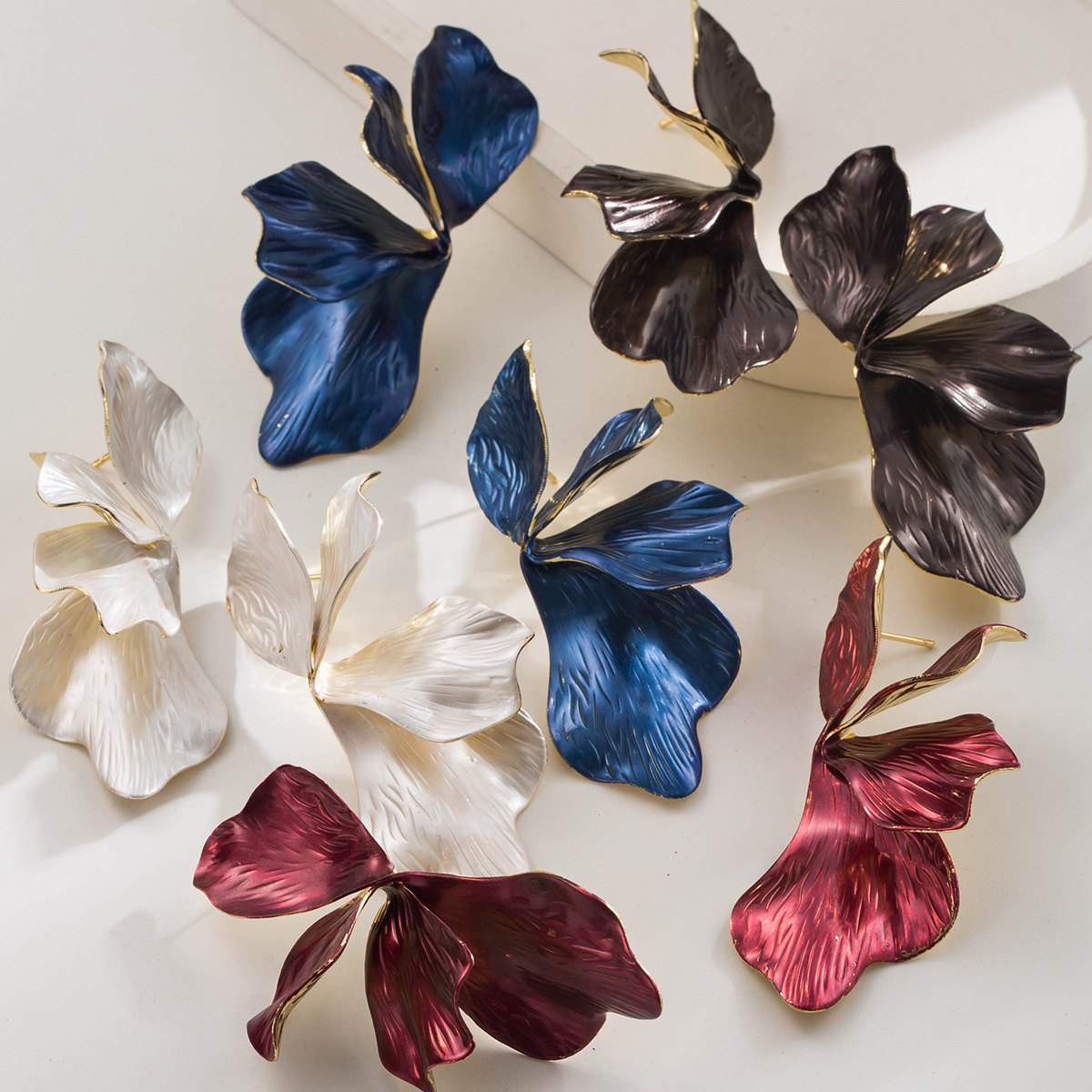 Cross-Border European and American Retro Baroque Style Solid Color Multi-Layer Petal Earrings Niche Design Versatile High-End Ear Jewelry