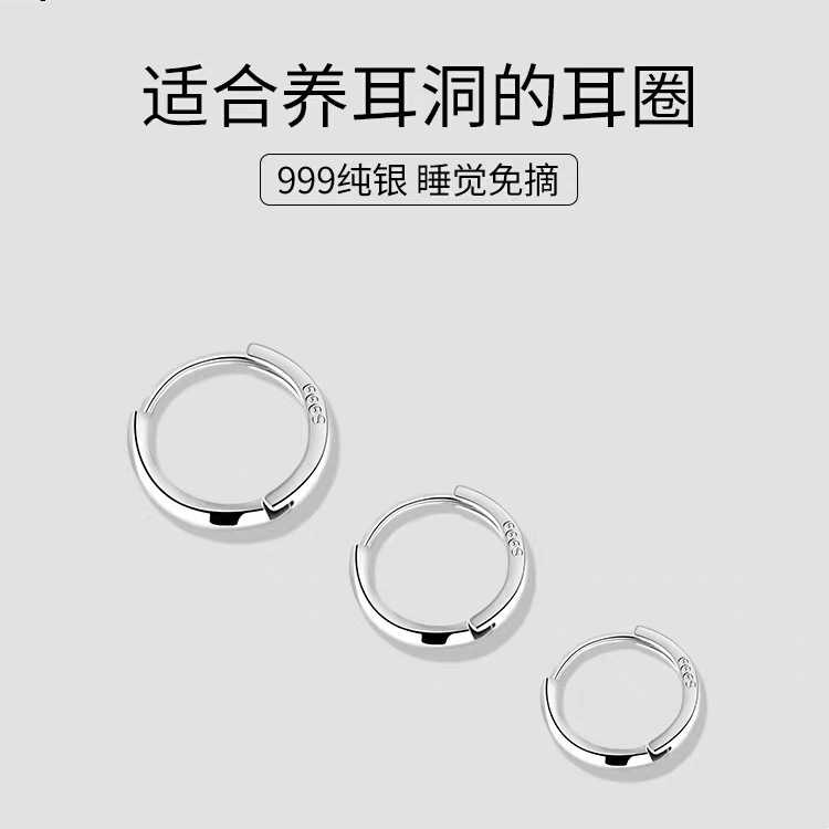 Chen Seventeen 999 Sterling Silver Simple Plain Hoop Ear Bone Ring Niche High-End Circle Ear Buckle Cool Elegant Style Earrings