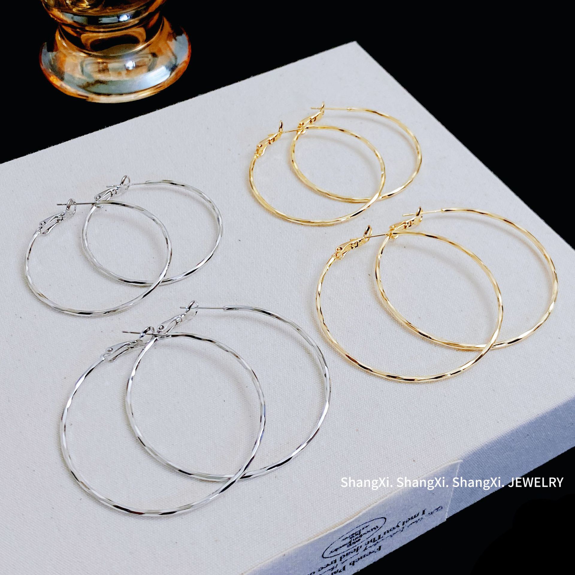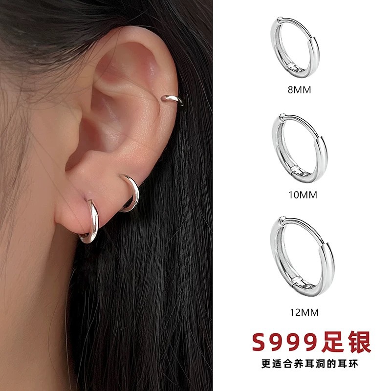 S999 Sterling Silver Earrings, Fashionable Neutral Style Plain Hoop Earrings, High-End Stylish Trendy Silver Earrings and Earrings Wholesale