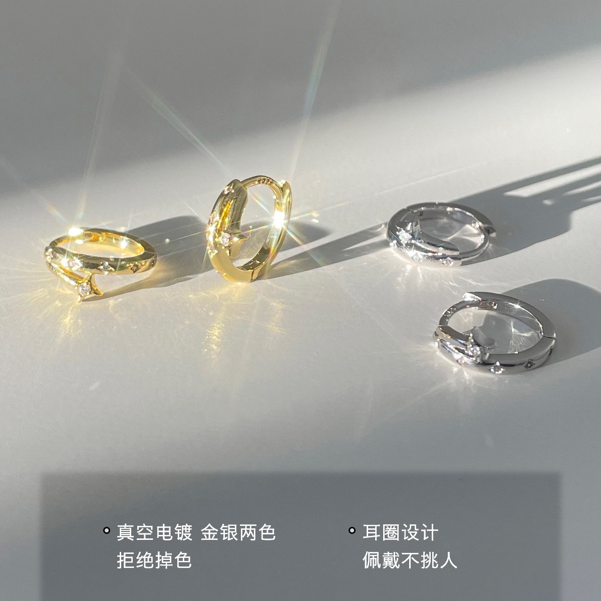 S925 Silver Korean Style Simple Light Circle Ear Buckle Men's and Women's Small Ring Ear All-match Small Line Earrings G7680