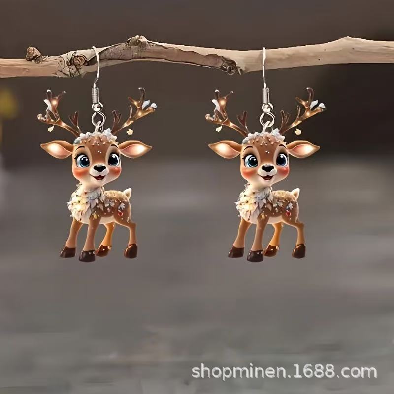 Cross-Border New Products Christmas New Christmas Deer Earrings Christmas Acrylic Earrings Earrings Earrings Decorations