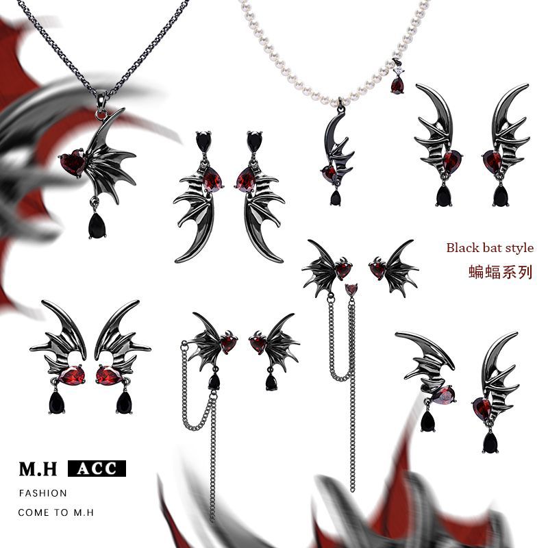 2025 New Original Design Dark Style Bat Wings Series Fashionable Sweet Cool Punk Style Necklace Earrings Jewelry
