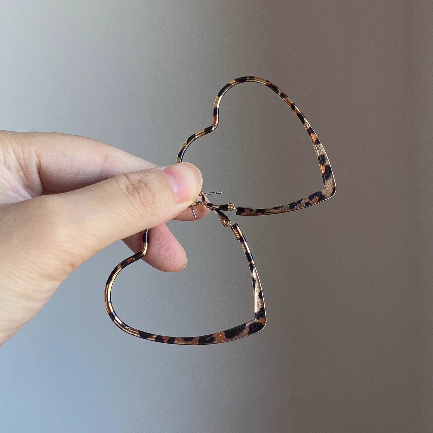 S925 Silver Leopard Print Heart Earrings for Women, Accessible Luxury Niche Design, High-End Elegant, Versatile American Retro Earrings