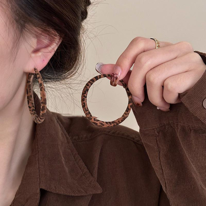 Silver Needle Fabric Leopard Print Round Rhombus Earrings European and American Retro Melard Earrings Niche High-End Exaggerated Earrings