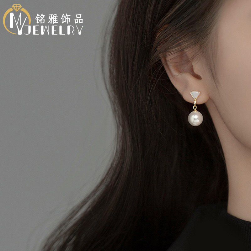 Antique S925 Sterling Silver Shell Pearl Earrings High-end Earrings Women's Retro Elegant Elegant Shell Bead Long Earrings