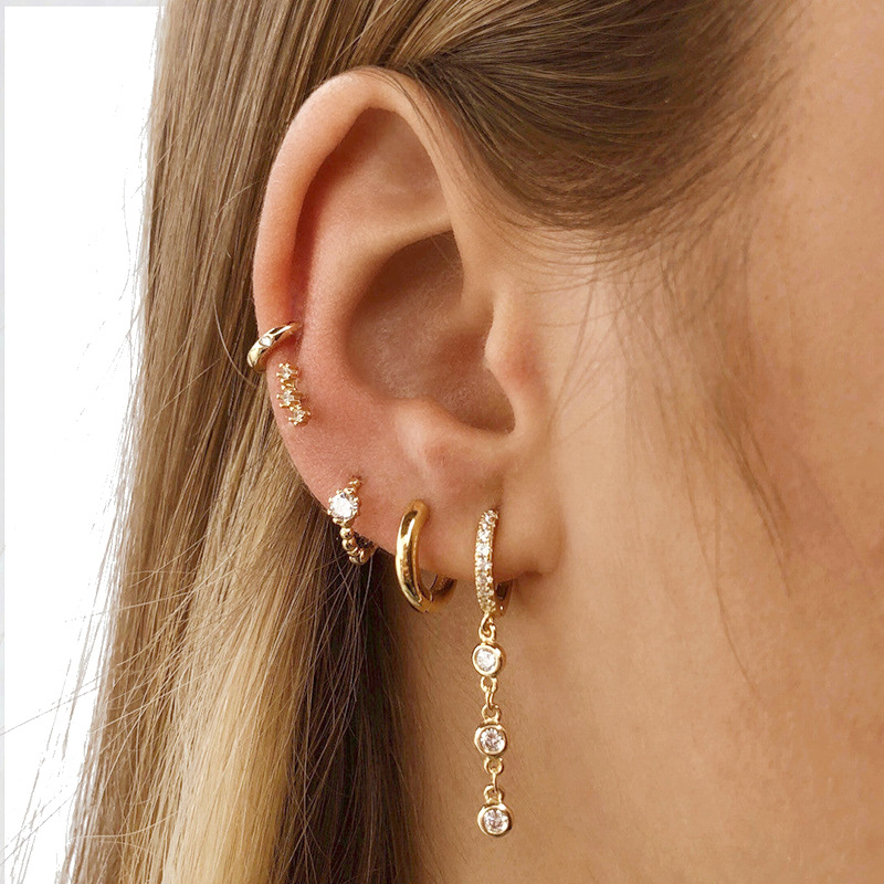 2025 New Product Glossy Gold-Plated Exquisite 3 Pairs of Earrings Korean Style Niche Accessible Luxury Style Super Flash Personalized Earrings