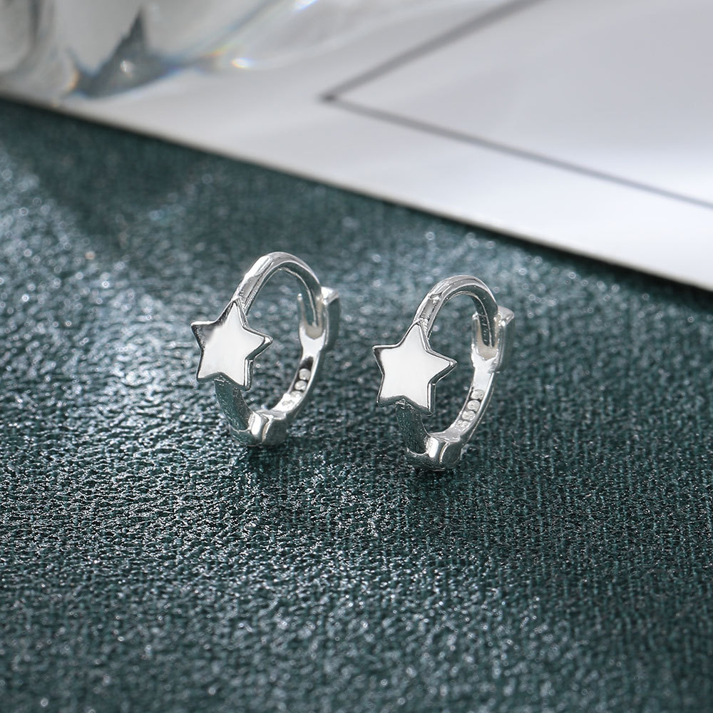 S999 Sterling Silver Pentagonal Star Small Earrings Women's Light Luxury Ear Ring Niche Design Advanced Sense Ear Bone Nail Foot Silver Ear Buckle