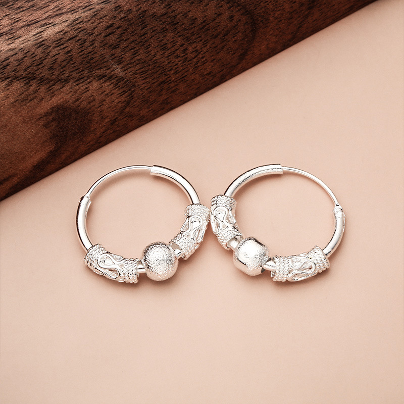 Transfer Bead Earrings Women's Silver Plated Earrings Large Women's Fashion Wholesale