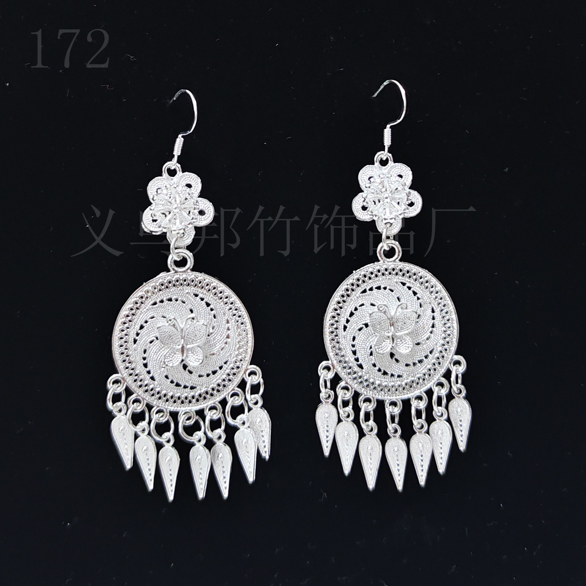 Miao Yi Dai Ethnic Style Silver Jewelry Women's Silver Earrings Bohemian Tassel Imitation Silver Earrings