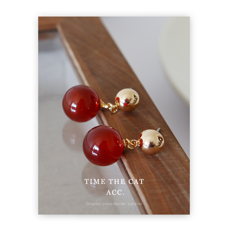 French retro red agate high-grade red earrings S925 silver needle elegant niche Qingdao factory earrings