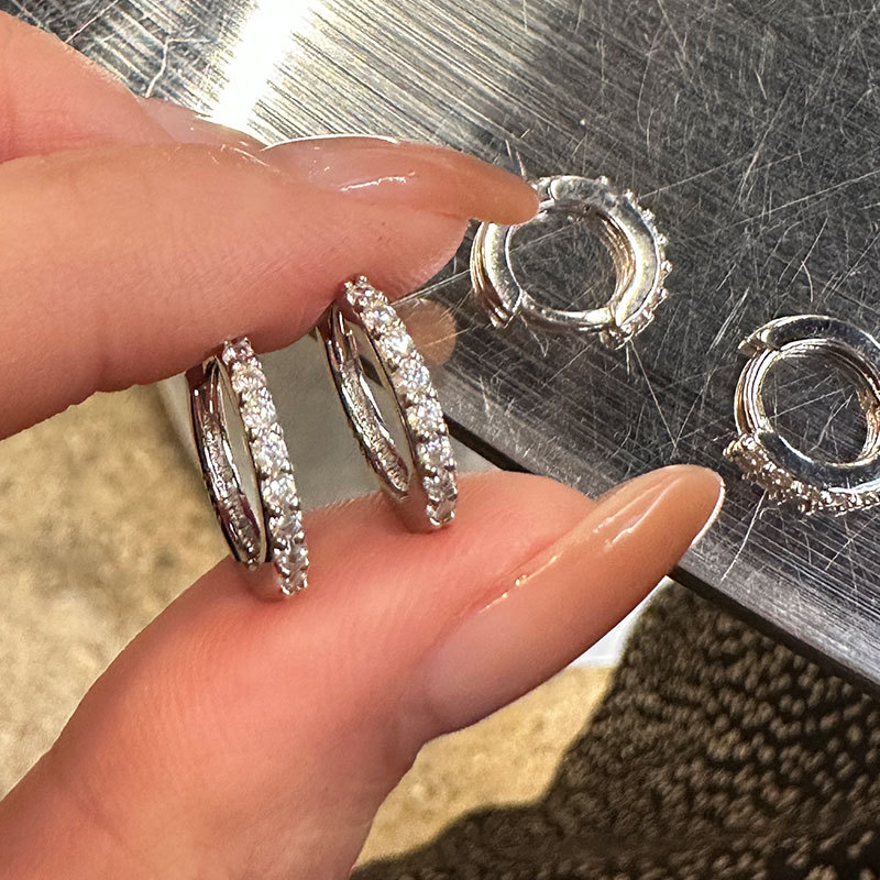Light luxury circle zircon ear buckle female 925 sterling silver European and American simple fashion exquisite earrings 2023new 0699A