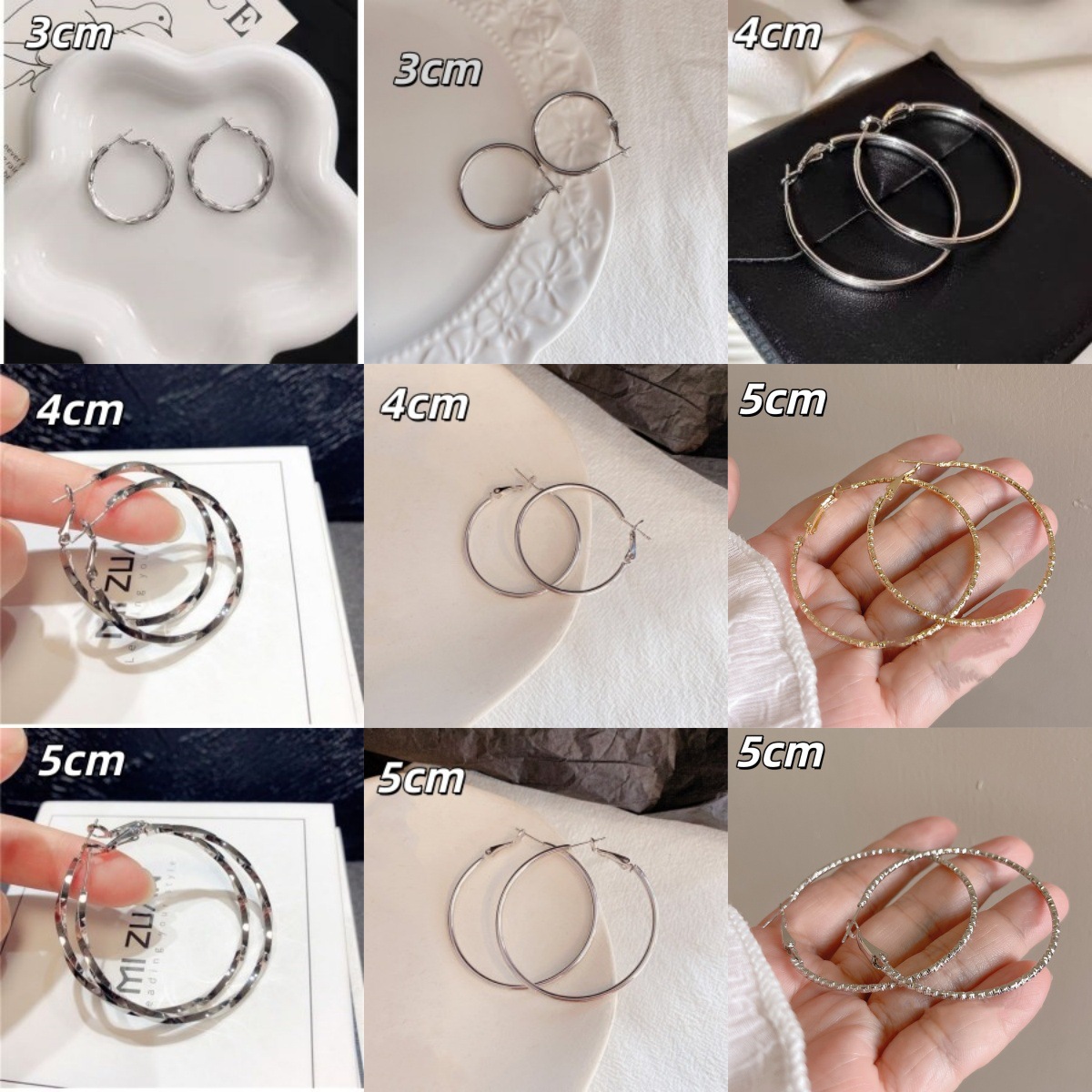 European and American Cross-Border Silver Plain Hoop Large Circle Earrings for Women, Gold Simple Temperament Versatile Twisted Pattern Hoop Earrings, Light Luxury
