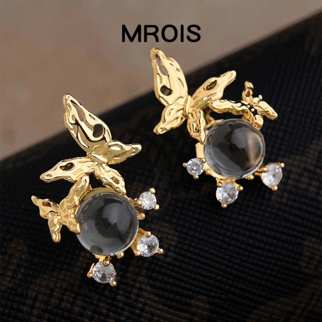 Designer~Butterfly~Fresh and Sweet Forest-Style Electroplated 18K Real Gold S925 Silver Needle Zircon Butterfly Earrings for Women