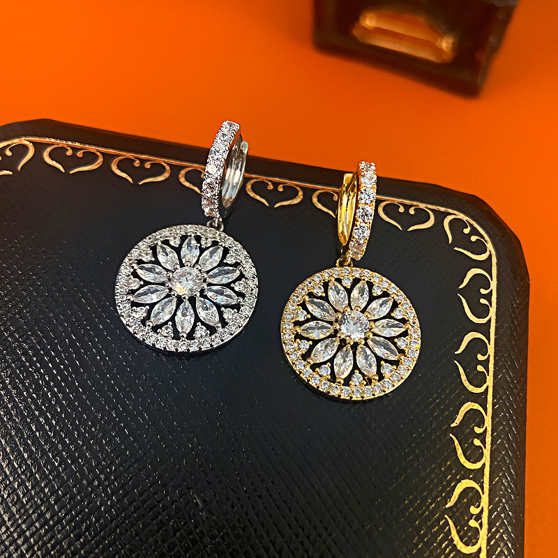 Full Diamond Design Round Earrings Trendy Women's European and American Retro Light Luxury Style Earrings Personalized Fashion Earrings European and American Style Earrings