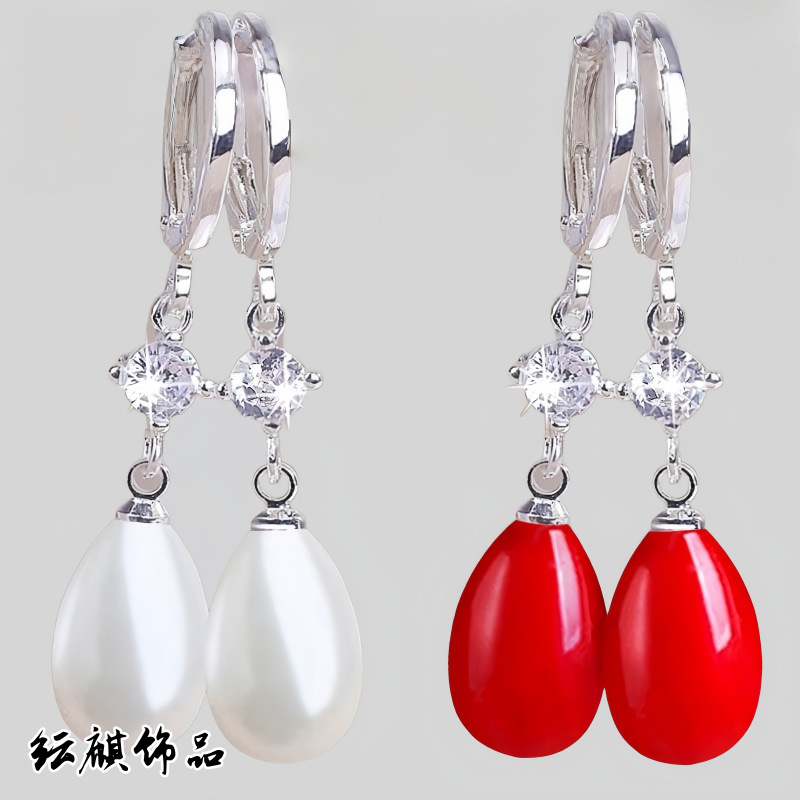 2025 New Red Water Drop Diamond Earrings Earrings Popular Same Style Silver Needle Ins Style Ear Hook Earrings