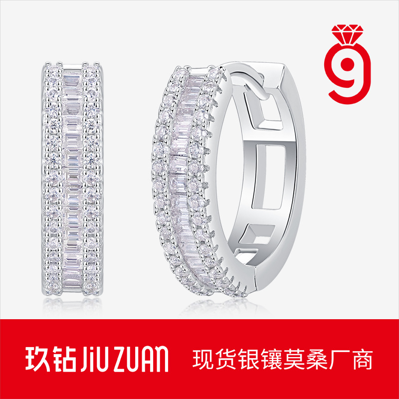 Xdy925 Sterling Silver Personalized Simple Earrings Factory Direct Sales Single Row Moissanite Earrings Ear Buckle Holiday Gift